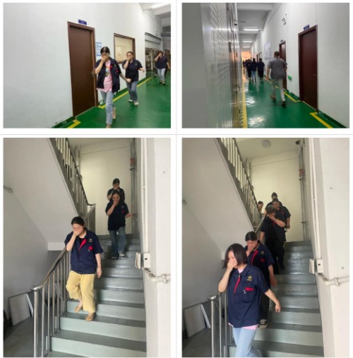 Saat alarm berbunyi, semua karyawan segera memasuki keadaan darurat. Di bawah bimbingan pemandu evakuasi, semua orang membungkuk, menutupi mulut dan hidung mereka, dan dievakuasi dengan cepat dan tertib ke area yang aman di sepanjang rute yang telah ditentukan.