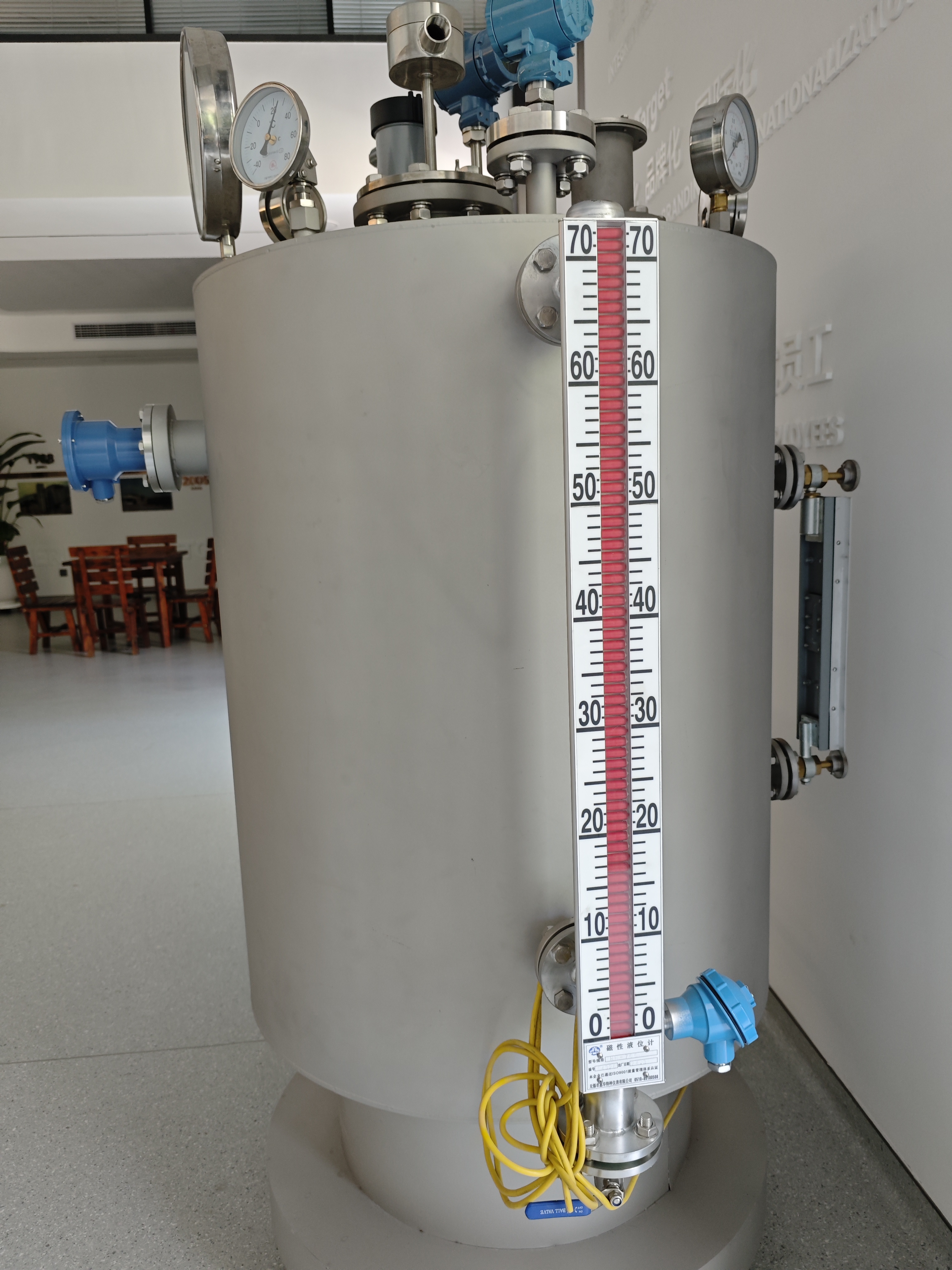 Selama proses penyulingan minyak bumi dan produksi bahan kimia, pemantauan tingkat cairan di berbagai tangki penyimpanan dan bejana reaksi sangatlah penting. Pengukur level penutup magnetik dapat menampilkan ketinggian level cairan minyak mentah, produk minyak sulingan, dan bahan mentah kimia secara real time. Dikombinasikan dengan saklar magnetik, mereka dapat mencapai fungsi alarm tingkat cairan tinggi dan rendah, secara efektif mencegah insiden seperti tangki meluap atau kosong. Misalnya, di area tangki penyimpanan kilang minyak besar, dengan menggunakan pengukur tingkat penutup magnetik bersama dengan sistem kontrol otomatis, pemantauan jarak jauh dan pengisian cairan otomatis dapat dicapai, yang secara signifikan meningkatkan keselamatan produksi dan efisiensi manajemen.
