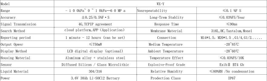 Nirkabel pemancar suhu adalah instrumen cerdas berdaya rendah dengan kemampuan komunikasi nirkabel. Ini didasarkan pada mikrokontroler kelas industri canggih sebagai intinya, menggunakan sensor berkualitas tinggi sebagai front-end akuisisi data, dan menggabungkan modul data nirkabel IoT. Ini mewujudkan transmisi nirkabel data instrumen di lokasi ke cloud melalui jaringan WIFI dan 4G. Dua metode, yaitu transmisi berwaktu dan alarm ambang batas, diadopsi untuk segera mendeteksi suhu abnormal, sehingga memastikan keamanan saluran pipa. Produk ini menggunakan housing tahan ledakan tipe industri. Dalam hal pemrosesan sensor, termometer resistansi platinum impor Pt100 digunakan untuk kompensasi suhu multi-titik guna mencapai pengumpulan data yang stabil dan memastikan keandalan dan keakuratan data.