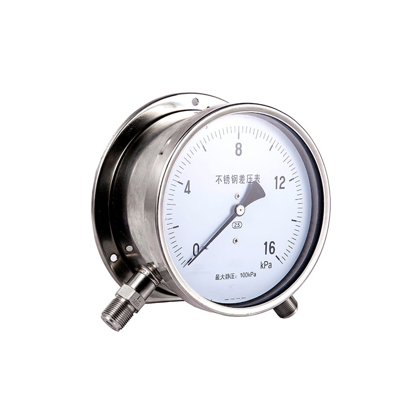 Instrumen ini mengadopsi struktur tabung Bourdon gDana, yaitu, dua tabung Bourdon dipasang pada posisi simetris di kedua sisi braket "I". Bagian atas dan bawah dari braket "I" adalah ujung bergerak dan ujung tetap masing -masing, dan bagian tengah dihubungkan oleh potongan pegas: dua tabung Bourdon berada dalam keadaan paralel, dan dihubungkan dengan sambungan tegangan tinggi dan rendah pada case dengan conduit masing -masing: mekanisme transmisi roda gigi secara langsung dipasang pada ujung yang tetap, dan secara langsung. pada mekanisme transmisi gigi.