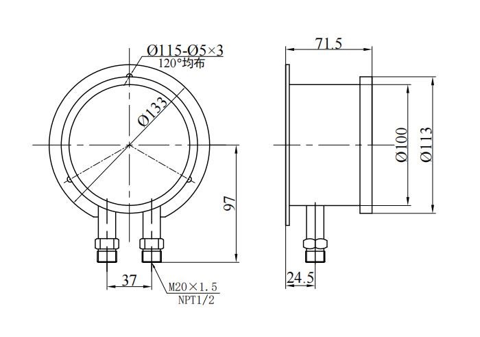3. Ukuran utas gabungan: konvensional M20 × 1.5 , NPT1/2 (atau penunjukan pelanggan);