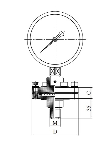 Instrumen ini adalah pengukuran tidak langsung. Deformasi diafragma isolasi di bawah tekanan dari media yang diukur, cairan penyegelan bertekanan, dan tekanan ditransmisikan ke tekanan.